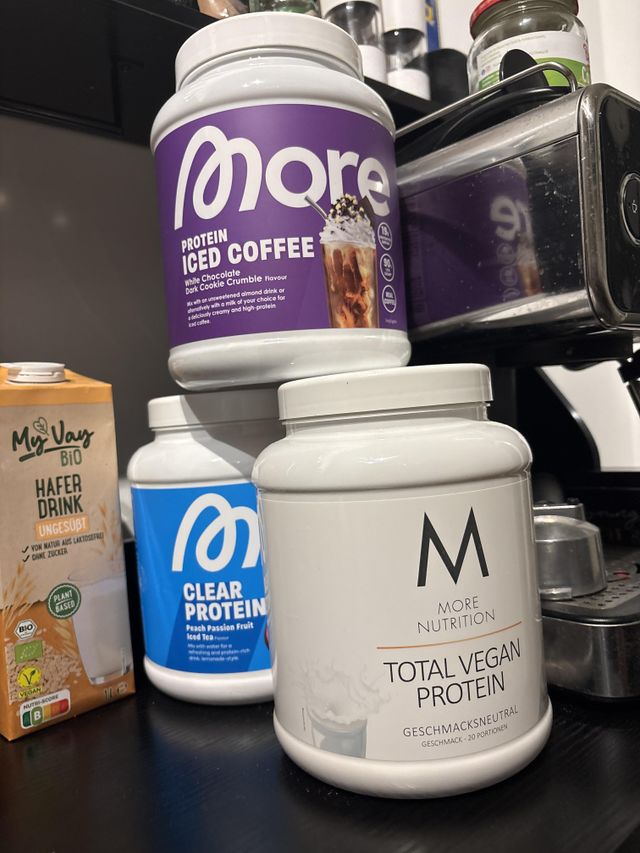 Unser More Vegan Protein gibt es in vielen, leckeren Geschmackssorten – von Vanilla über Fine Milk Chocolate bis hin zu Blueberry Muffin und sogar geschmacksneutral. Damit kannst du bspw. dein Porridge oder dein Gebäck verfeinern aber auch leckere Sauce für deine Lieblingsgerichte kreieren und zusätzlich mit einer extra Portion Protein anreichern. Worauf wartest du eigentlich noch? Schnapp dir dein More Vegan Protein und genieß pflanzliche Protein so lecker wie noch nie!